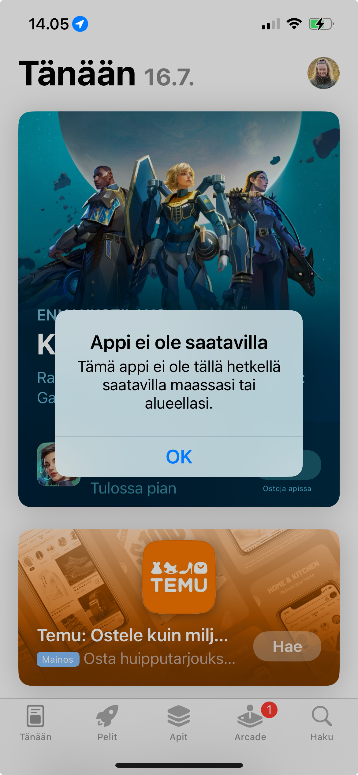 The notification says that the app is not available in your country or region at the moment.