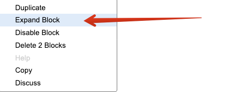Try right-click and then select “Expand Block”: