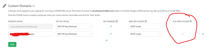 This setting simply defines which domain Backendless uses when generating file URLs. It does not affect whether the file repository itself is accessible.