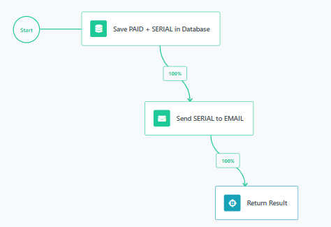 However if i testrun the webhook it only generates a serial and marks PAID as true.