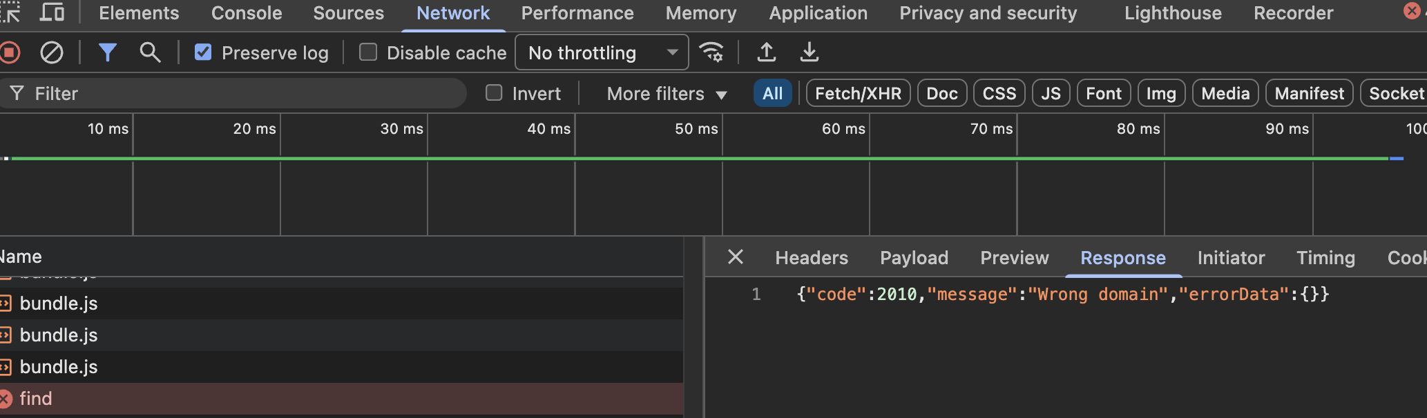 p: Wrong domain and the error code in the response is 2010, Wrong domain.