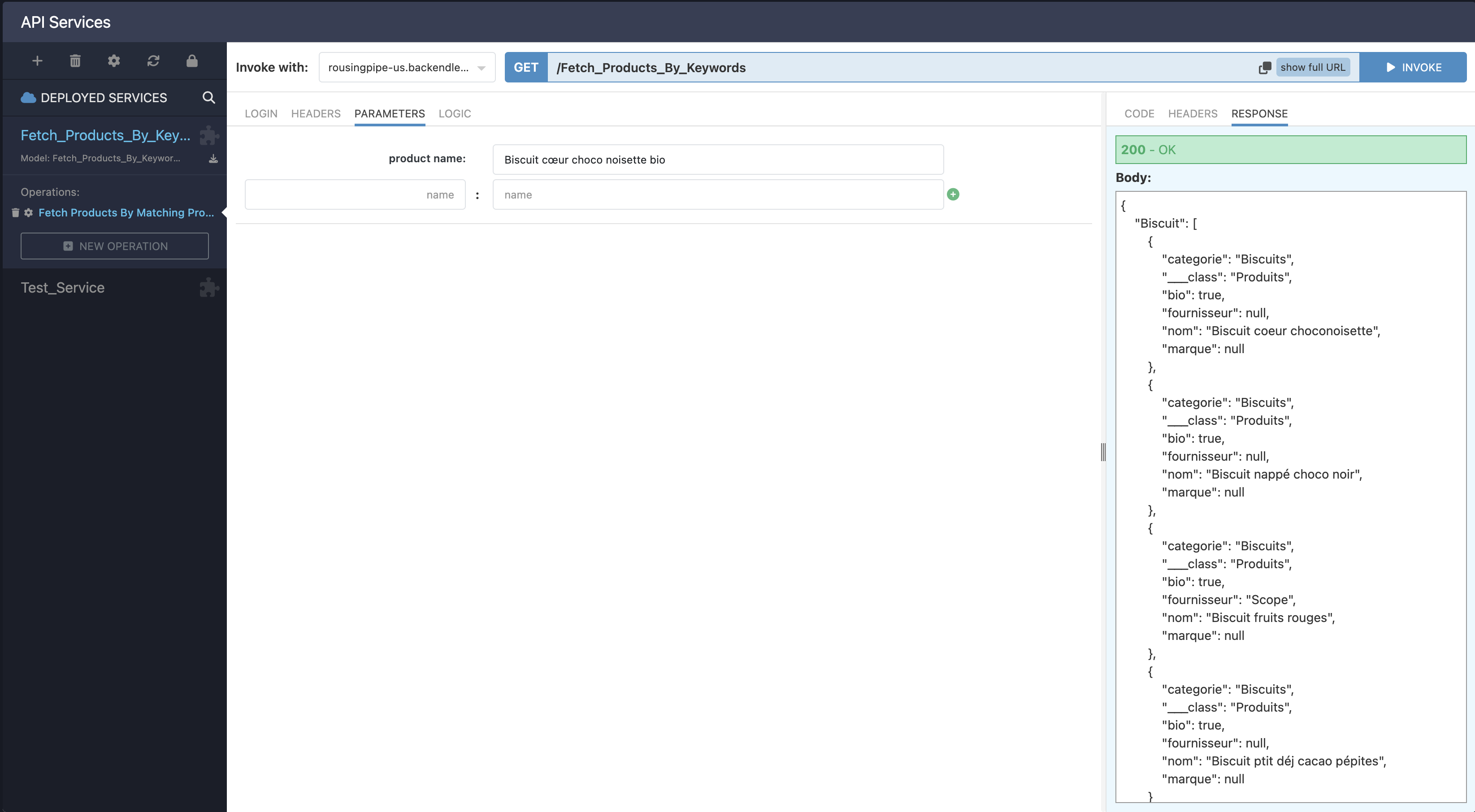 <block xmlns="http://www.w3.org/1999/xhtml" type="json_parse" id="uqTBI#%lyhYi9k,)Pa_-" x="224.0546875" y="125"><value name="text"><shadow type="text" id="4|gaSe5TkR^/,xrt?LGp"><field name="TEXT"></field></shadow><block type="raw_text" id="yn:EaZ.euVTBLNVinCeH"><field name="RAW_TEXT">{ "NOISETTE": [ { "categorie": "Biscuits", "___class": "Produits", "bio": true, "fournisseur": null, "nom": "Cookie choco noisette sans gluten", "objectId": "033FAB56-CD78-44D5-B559-6D8BA7A855D9", "marque": null }, { "categorie": "Biscuits", "___class": "Produits", "bio": true, "fournisseur": null, "nom": "Biscuit coeur choconoisette", "objectId": "264FB284-6B49-42D4-9C7E-C16DF4DCE7ED", "marque": null }, { "categorie": "Bonbons, choco", "___class": "Produits", "bio": true, "fournisseur": "Superchoc", "nom": "Tablette chocolat noir noisette café", "objectId": "368A4013-3D64-4F1E-AA74-0592C2825327", "marque": null }, { "categorie": "Fruits secs", "___class": "Produits", "bio": true, "fournisseur": null, "nom": "Noisettes grillées", "objectId": "9C9CAA13-7278-42A3-A2CF-AC62679C196F", "marque": null }, { "categorie": "Fruits secs", "___class": "Produits", "bio": true, "fournisseur": null, "nom": "Noisettes entières", "objectId": "B0F1BC3E-BCAA-4D37-B8E3-7A0C5AF03AA2", "marque": null }, { "categorie": "Bonbons, choco", "___class": "Produits", "bio": false, "fournisseur": "Sunshine", "nom": "Tablette choco lait noisettes", "objectId": "C44336BB-CAE5-4ABC-B902-19161F8022CF", "marque": null } ], "CHOCO": [ { "categorie": "Biscuits", "___class": "Produits", "bio": true, "fournisseur": null, "nom": "Cookie choco noisette sans gluten", "objectId": "033FAB56-CD78-44D5-B559-6D8BA7A855D9", "marque": null }, { "categorie": "Bonbons, choco", "___class": "Produits", "bio": false, "fournisseur": "Sunshine", "nom": "Tablette choco lait amandes", "objectId": "04B1996C-D433-49C4-ADAE-9AA6FF5CF49B", "marque": null }, { "categorie": "Bonbons, choco", "___class": "Produits", "bio": false, "fournisseur": "Sunshine", "nom": "Tablette choco noir éclats", "objectId": "0AA72226-50C5-4CB7-BD2B-C6E4693A1F8F", "marque": null }, { "categorie": "Bonbons, choco", "___class": "Produits", "bio": true, "fournisseur": null, "nom": "Tablette choco lait caramel beurre salé", "objectId": "1392C8A2-1782-43F5-B3E0-0DD4F66B9423", "marque": null }, { "categorie": "Biscuits", "___class": "Produits", "bio": true, "fournisseur": null, "nom": "Biscuit coeur choconoisette", "objectId": "264FB284-6B49-42D4-9C7E-C16DF4DCE7ED", "marque": null }, { "categorie": "Bonbons, choco", "___class": "Produits", "bio": true, "fournisseur": "Superchoc", "nom": "Tablette chocolat noir noisette café", "objectId": "368A4013-3D64-4F1E-AA74-0592C2825327", "marque": null }, { "categorie": "Biscuits", "___class": "Produits", "bio": true, "fournisseur": null, "nom": "Biscuit nappé choco noir", "objectId": "3DFE5837-4D85-4B28-B4D2-625FCB0660F5", "marque": null }, { "categorie": "Bonbons, choco", "___class": "Produits", "bio": true, "fournisseur": null, "nom": "Tablette chocolat noir 88%", "objectId": "407CF5A5-C01F-4A6C-920C-5914B7E3193F", "marque": null }, { "categorie": "Biscuits", "___class": "Produits", "bio": true, "fournisseur": null, "nom": "Cookie tout choco Belledonne", "objectId": "5C7D85F2-D19F-4E45-90C1-D6DAF45B5565", "marque": null }, { "categorie": "Bonbons, choco", "___class": "Produits", "bio": true, "fournisseur": null, "nom": "Palet chocolat noir 70%", "objectId": "7752A0E5-BCCF-4E2F-9D35-CFFF9E5CDDA8", "marque": null } ], "BISCUIT": [ { "categorie": "Biscuits", "___class": "Produits", "bio": true, "fournisseur": null, "nom": "Biscuit coeur choconoisette", "objectId": "264FB284-6B49-42D4-9C7E-C16DF4DCE7ED", "marque": null }, { "categorie": "Biscuits", "___class": "Produits", "bio": true, "fournisseur": null, "nom": "Biscuit nappé choco noir", "objectId": "3DFE5837-4D85-4B28-B4D2-625FCB0660F5", "marque": null }, { "categorie": "Biscuits", "___class": "Produits", "bio": true, "fournisseur": "Scope", "nom": "Biscuit fruits rouges", "objectId": "C3DA33E1-99BB-4F2D-A4F9-171A34F3AE0A", "marque": null }, { "categorie": "Biscuits", "___class": "Produits", "bio": true, "fournisseur": null, "nom": "Biscuit ptit déj cacao pépites", "objectId": "F0D24780-05A8-4B18-8937-38271F3D1128", "marque": null } ], "BIO": [], "CŒUR": [] }</field></block></value></block>
