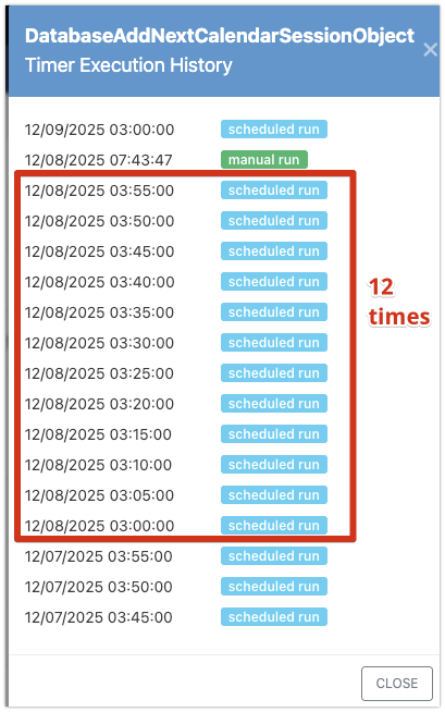 DatabaseAddNextCalendarSessionObject - this timer has the following cron expression: