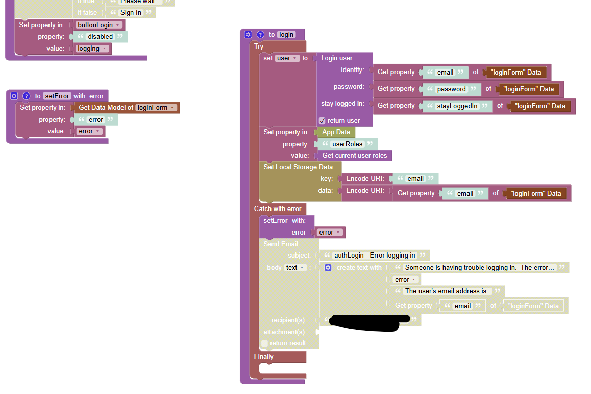 The Login user block in UI Builder does not log anything to the log file. The log file entries come from the Cloud Code which contains the logic from the Twilio login. The logic uses Event Handlers to process the login in a special manner that supports both the classic login and one with a phone number.