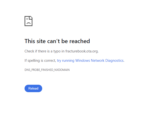 I am getting reports that a number of users are unable to access the site fracturebook.ota.org (app FXBK). I personally am able to access it from my location, so this may be a regional/CDN thing.